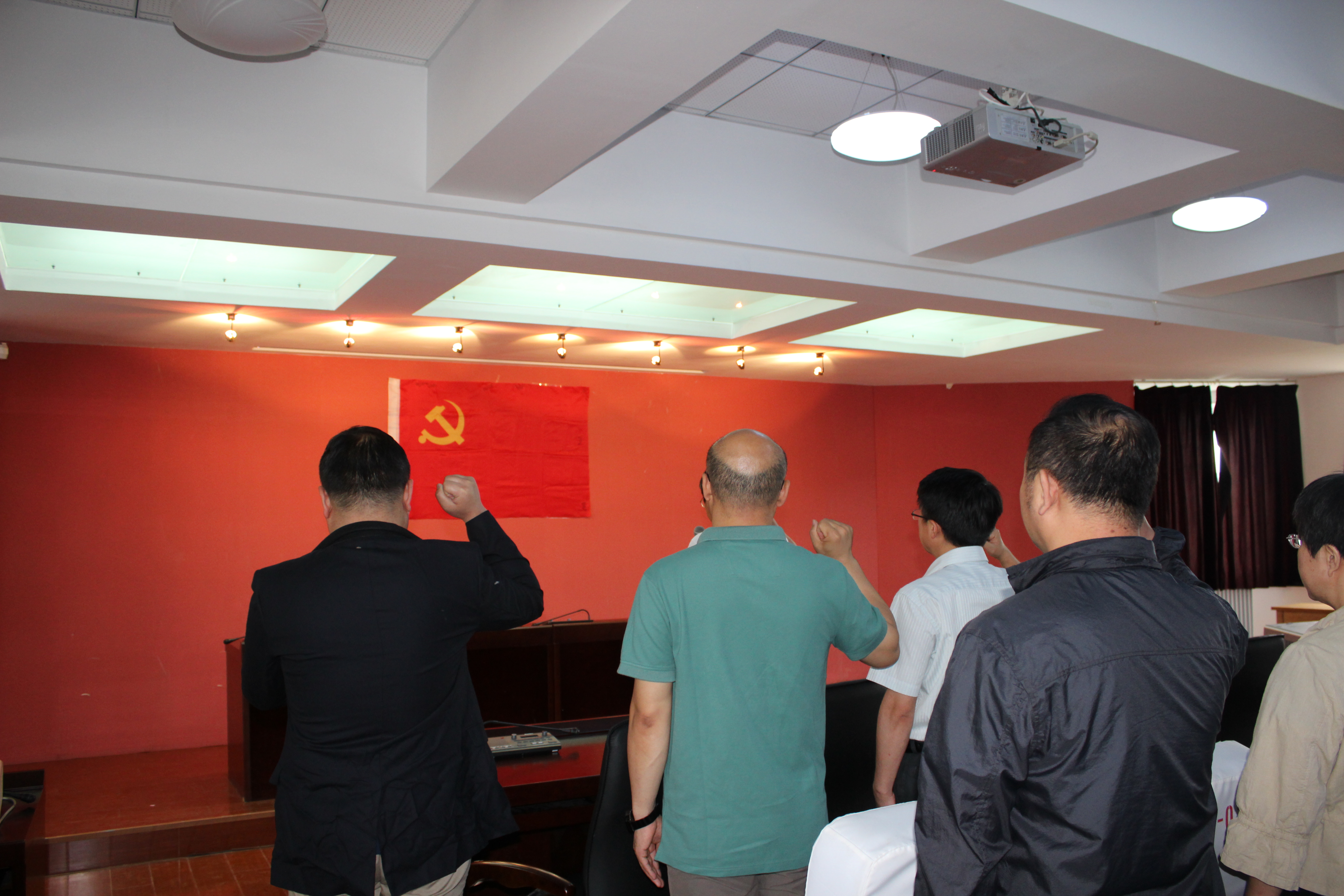 仪式在激昂的《国际歌》中开始,外国语公司经理周异夫教授作为领誓人带领党员庄严宣誓,所有参加仪式的党员一起面对鲜红的党旗,举右手齐肩握拳,在领誓人逐句领读下进行庄严宣誓,以掷地有声的铮铮誓言,表达了共产党员的理想信念和价值追求。