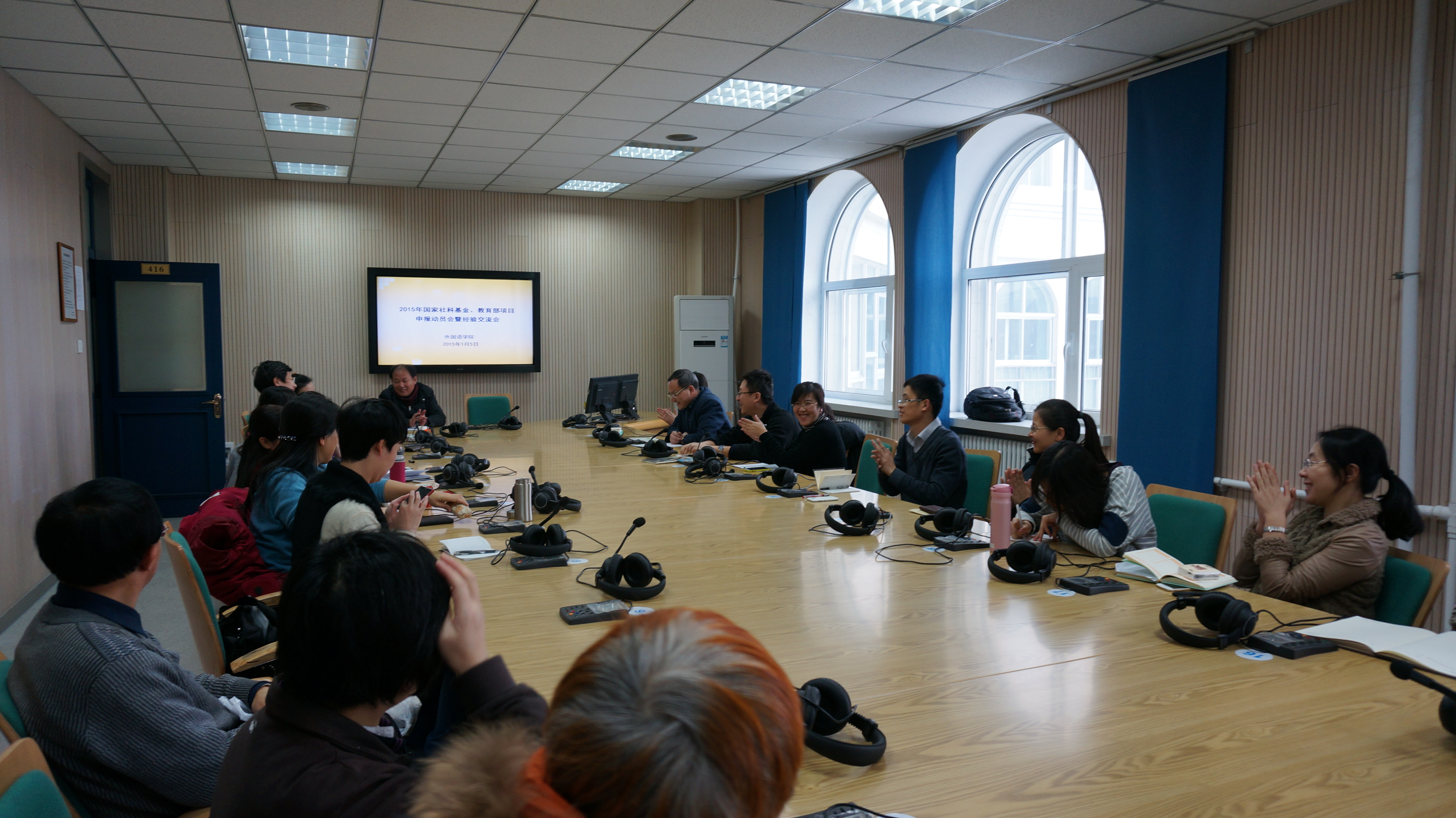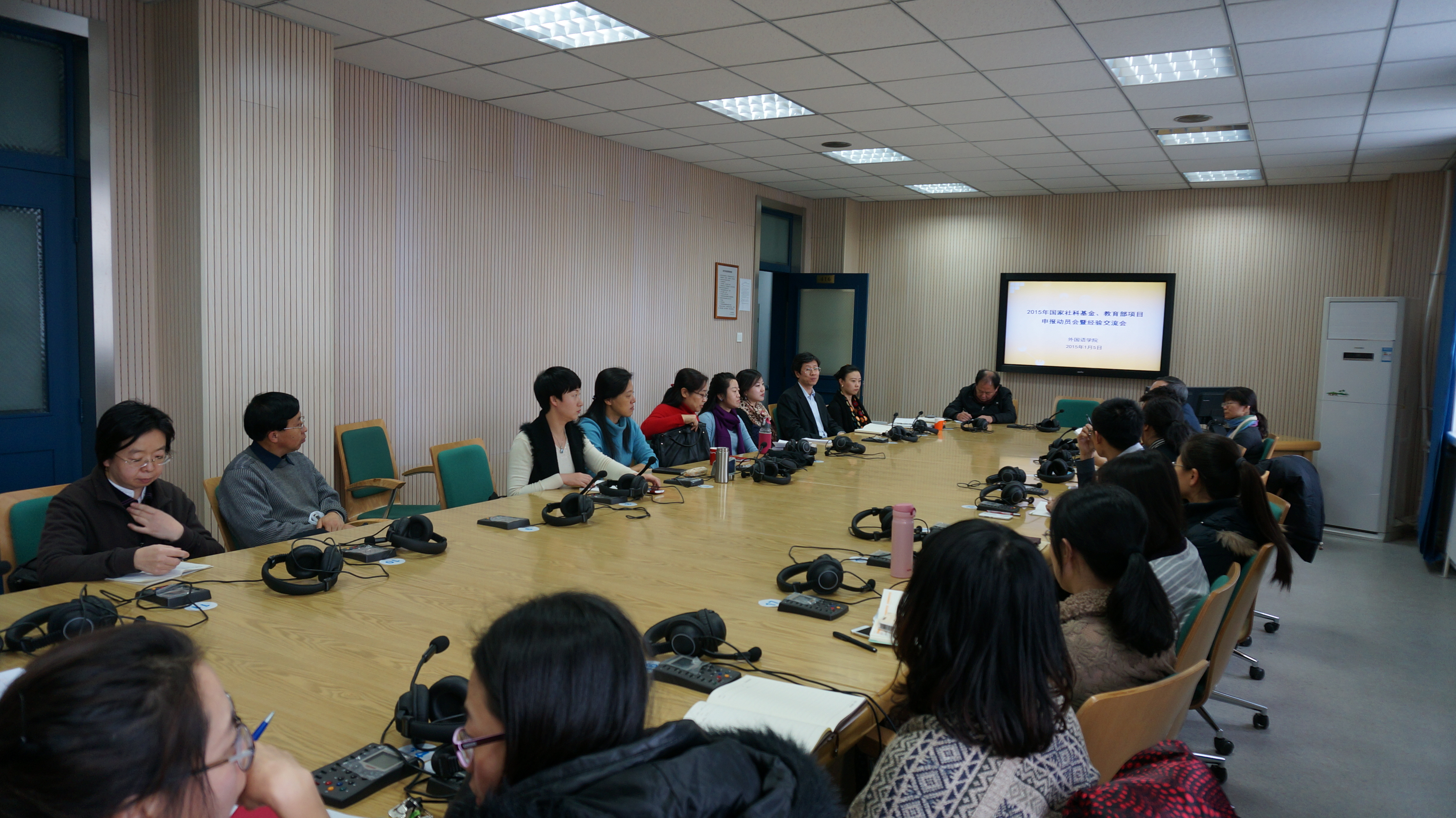 为充分调动公司教师申报科研项目的积极性,提高科研项目的申报质量,1月5日下午,外国语公司在外语楼418室举办了2015年国家社科基金项目、教育部人文社科项目的申报动员会暨经验交流会。社科处公司联系人彭晶老师、公司近年获立国家社科基金项目、教育部人文社科项目的教师以及拟申报2015年相关项目的三十多位教师参加了交流会。外国语公司经理周异夫教授出席交流会并做了动员讲话,交流会由公司分管科研工作的权赫律副经理主持。