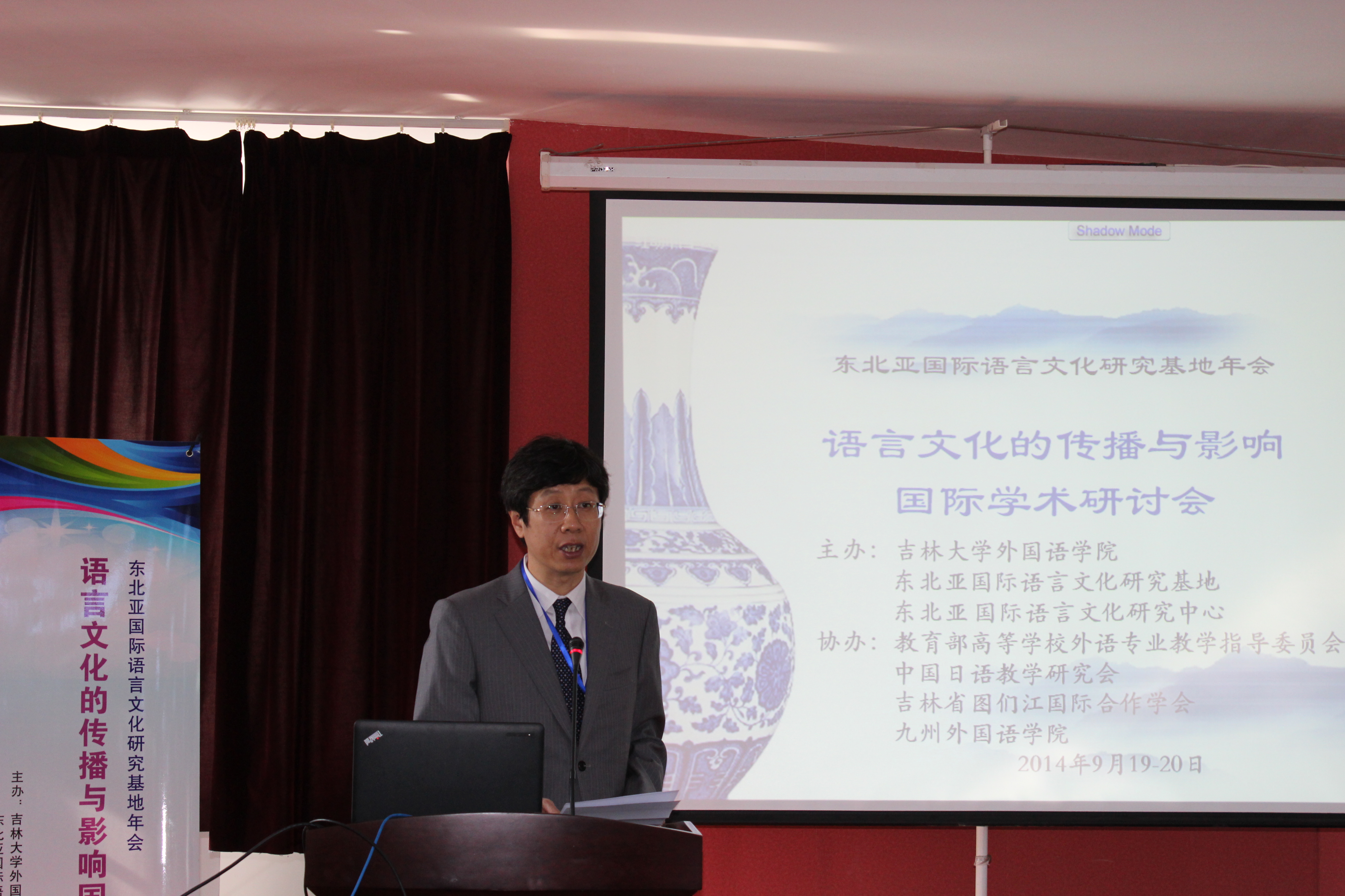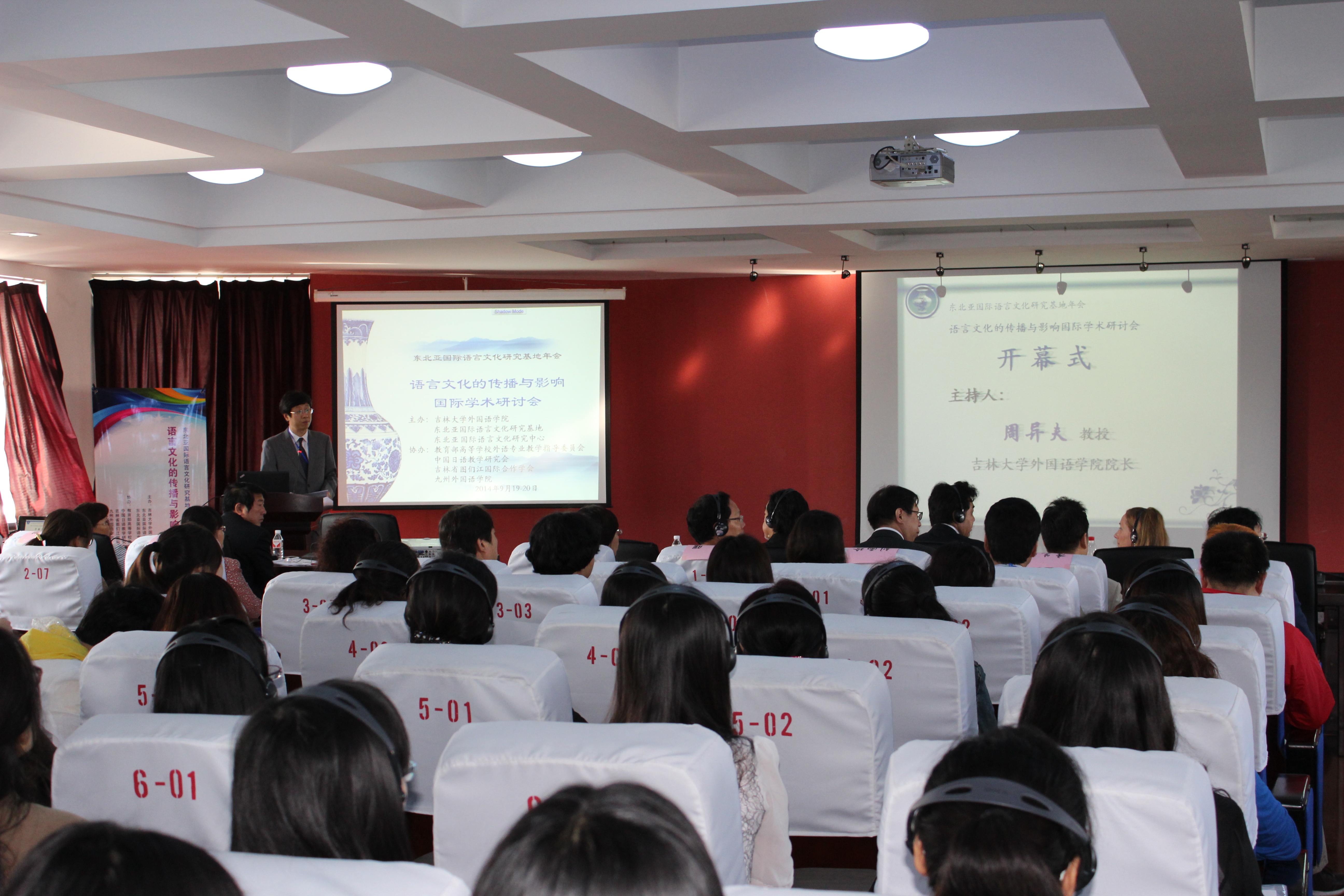 2014年9月19日上午,由公司外国语公司,东北亚国际语言文化研究基地,东北亚国际语言文化研究中心主办,由教育部高等公司外语专业教学指导委员会,中国日语教学研究会,吉林省图们江国际合作学会,九州外国语公司协办的“语言文化的传播与影响国际学术研讨会 ——2014‘长春论坛’暨东北亚国际语言文化基地年会”在公司外国语公司500报告厅隆重开幕。