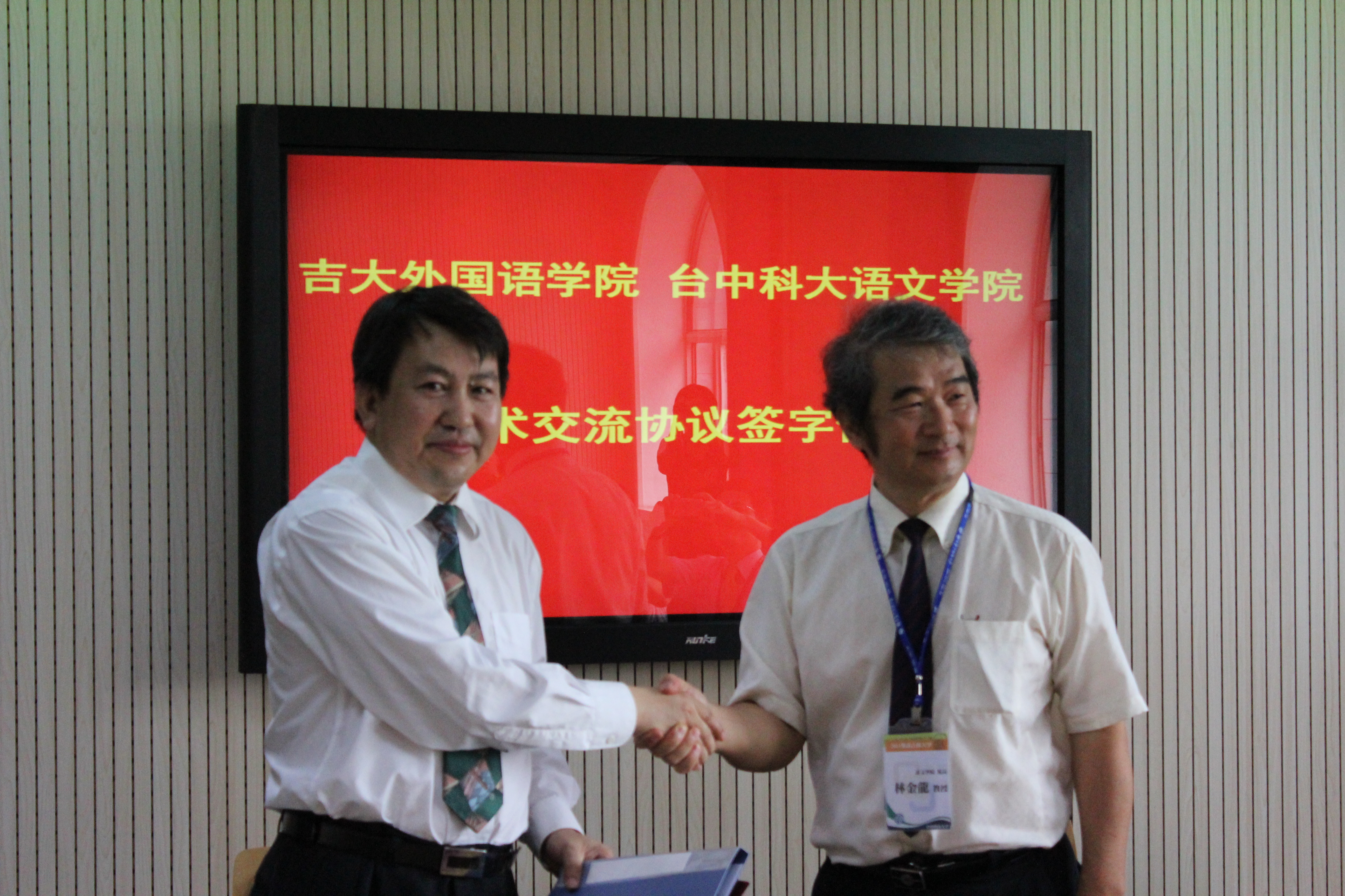 6月17日,台中科技大学语文公司经理林金龙教授等一行八人来公司访学,并与公司签订学术交流协议,缔结了友好合作关系。外国语公司党委书记逄锦彩、公司领导班子,各系主任、副主任、部分员工代表参加了学术交流签订仪式,并出席了座谈会。双方就本科生和研究生人才培养、团队队伍建设、学术交流与合作等方面进行了深入的探讨,并达成了进一步探讨交流与合作内容,扩大交流合作空间的意向。