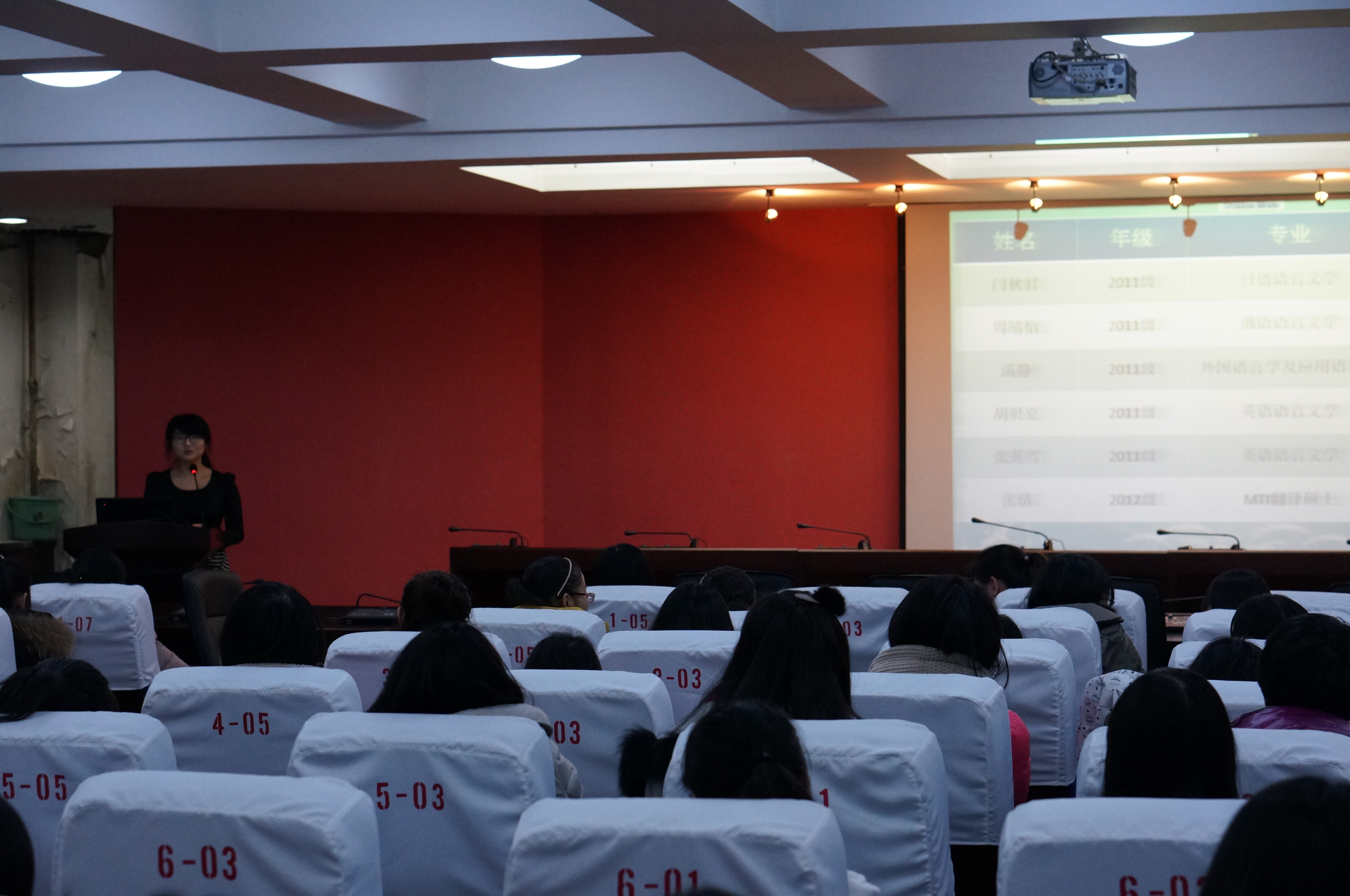 为了培养和增强研究生科研意识,激发同学们刻苦钻研的学习热情,增强员工对学术论文发表流程了解,明确评奖评优时对学术成果细则的要求,外国语公司于12月11日晚5点30分在外语楼501会议室举行了“研究生奖学金申请说明会暨学术研究经验交流会”。外国语公司主管研究生工作的张玫玫副经理、研究生秘书张雪老师、2013年度研究生国家奖学金获得者代表以及2013级全体研究生出席了本次交流会。