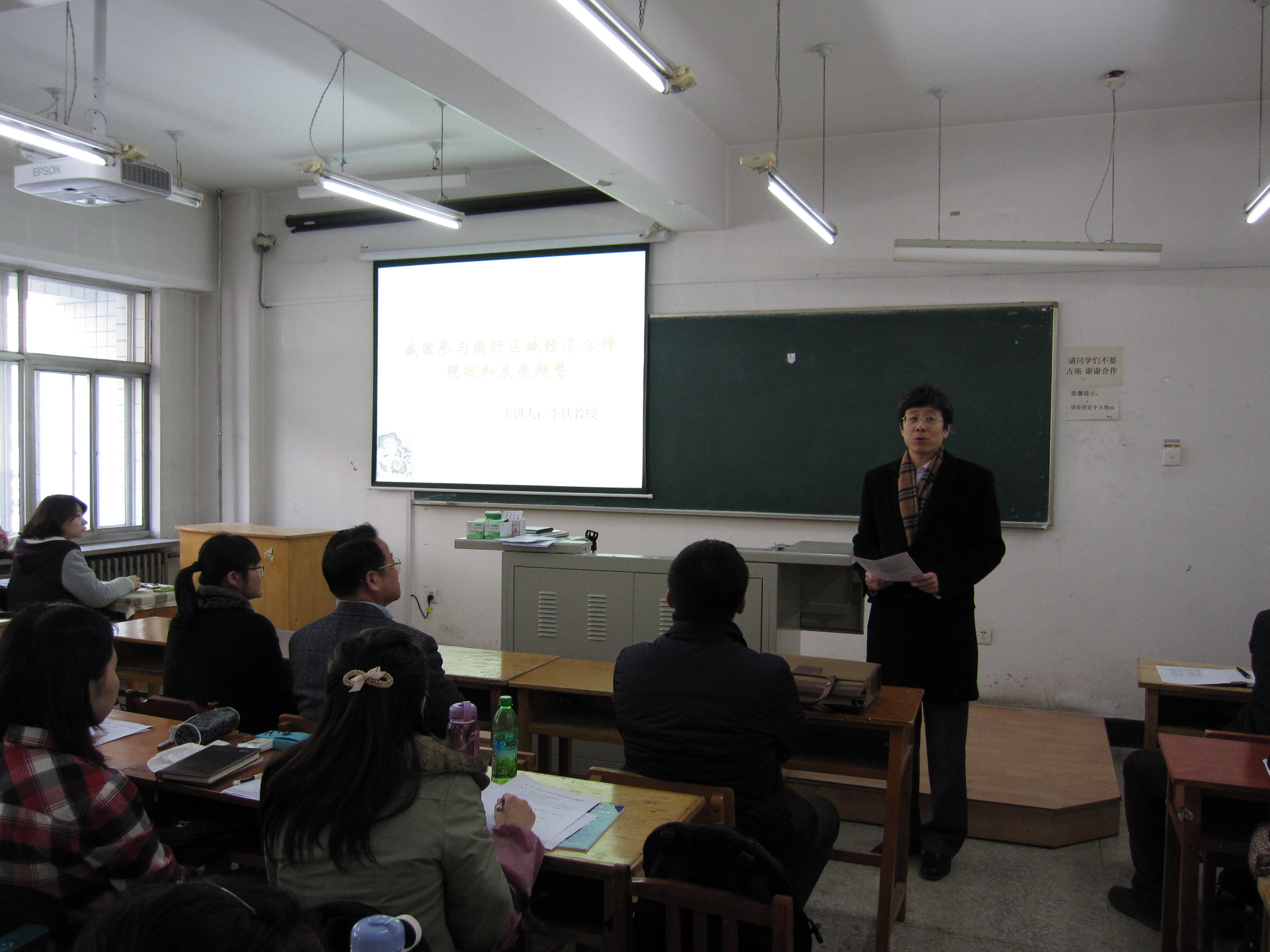 李铁教授多年从事经贸工作,实践经验丰富,曾任吉林省对外经贸经济合作厅副厅长、省商务厅副厅长、省政府发展研究中心主任,吉林省经济技术合作局党组书记兼局长等职,现任吉林省经济技术合作局党组书记。李教授为课程做了精心准备,课程分十五个专题,涵盖我国与世界主要经济区域、特别是东北亚区域各国的经贸合作现状等问题,该课程为公司硕士研究生开阔国际视野、丰富涉外经贸知识提供有利平台。