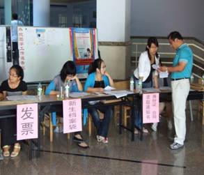 8月24日下午1点,外国语公司迎新工作正式拉开帷幕。迎新队伍由公司研究生党支部、团委及研究生会的员工干部组成,这支队伍在迎新的两天半时间里用最耐心的引导及最饱满的热情迎接每一位新同学。迎新工作分为以下几个步骤:回收录取通知书与合同、发放新生档案袋、收取发票、婚育情况统计、户口迁移办理、保险办理、党组织关系办理、划扣款协议以及一卡通的办理、贷款等各个事项。