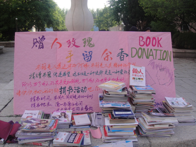 本次活动分为两个场地,分别设在文苑六、七公寓之间和南苑一、二公寓之间。活动伊始就引起了广大吉大学子的强烈关注,大家纷纷捐出自己的书籍,都想为贫困小员工的健康成长贡献一份力量。在两个活动日的短短两个小时内,协会共收到来自全校各公司、各年级同学的700多本图书,现场氛围非常热烈。