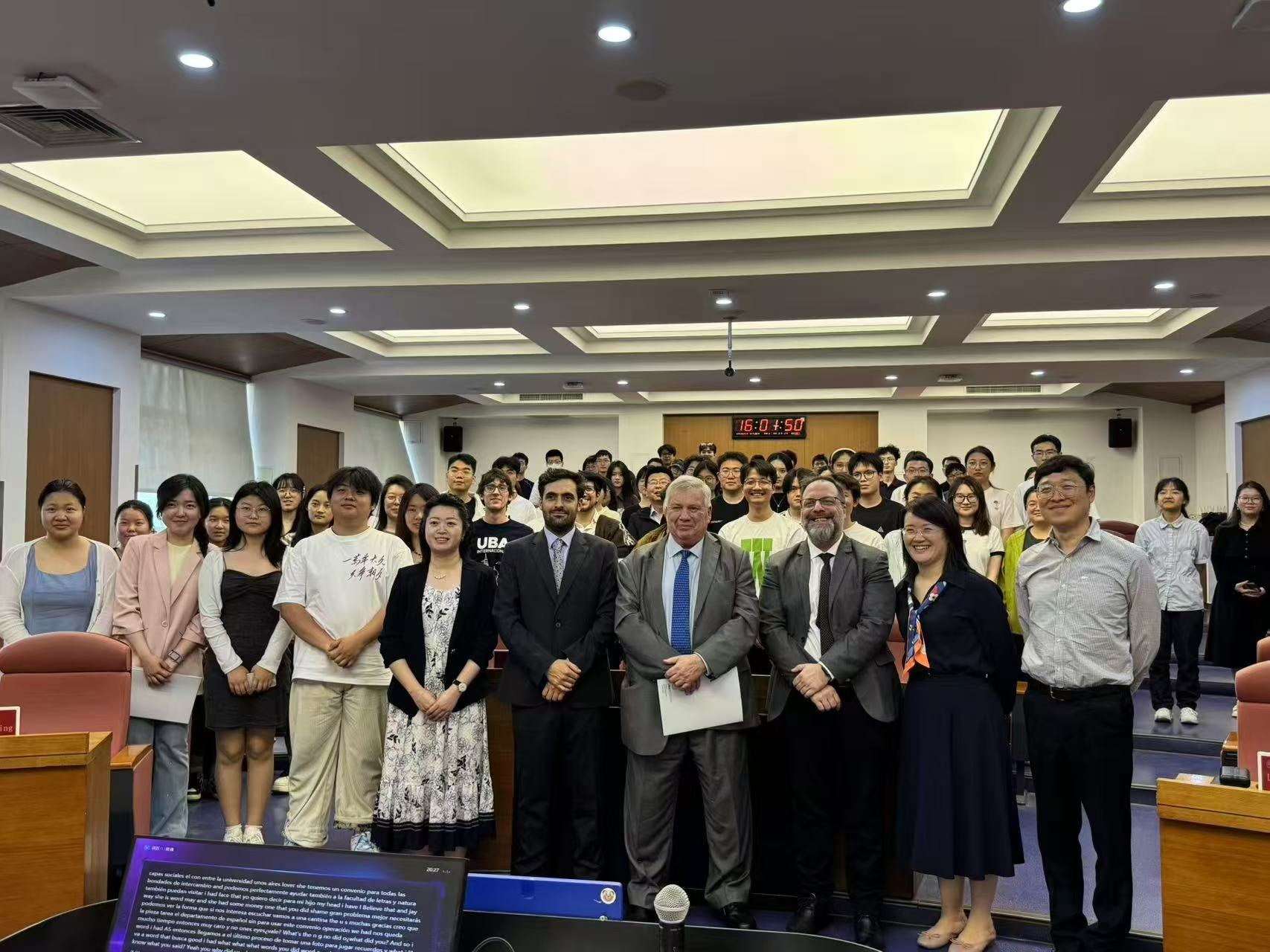 讲座接近尾声时,里卡多董事长与在场师生展开了学术交流,针对大家提出的赴布宜诺斯艾利斯大学留学及两校共建中阿文明交流互鉴合作平台等问题逐一进行了细致解答。