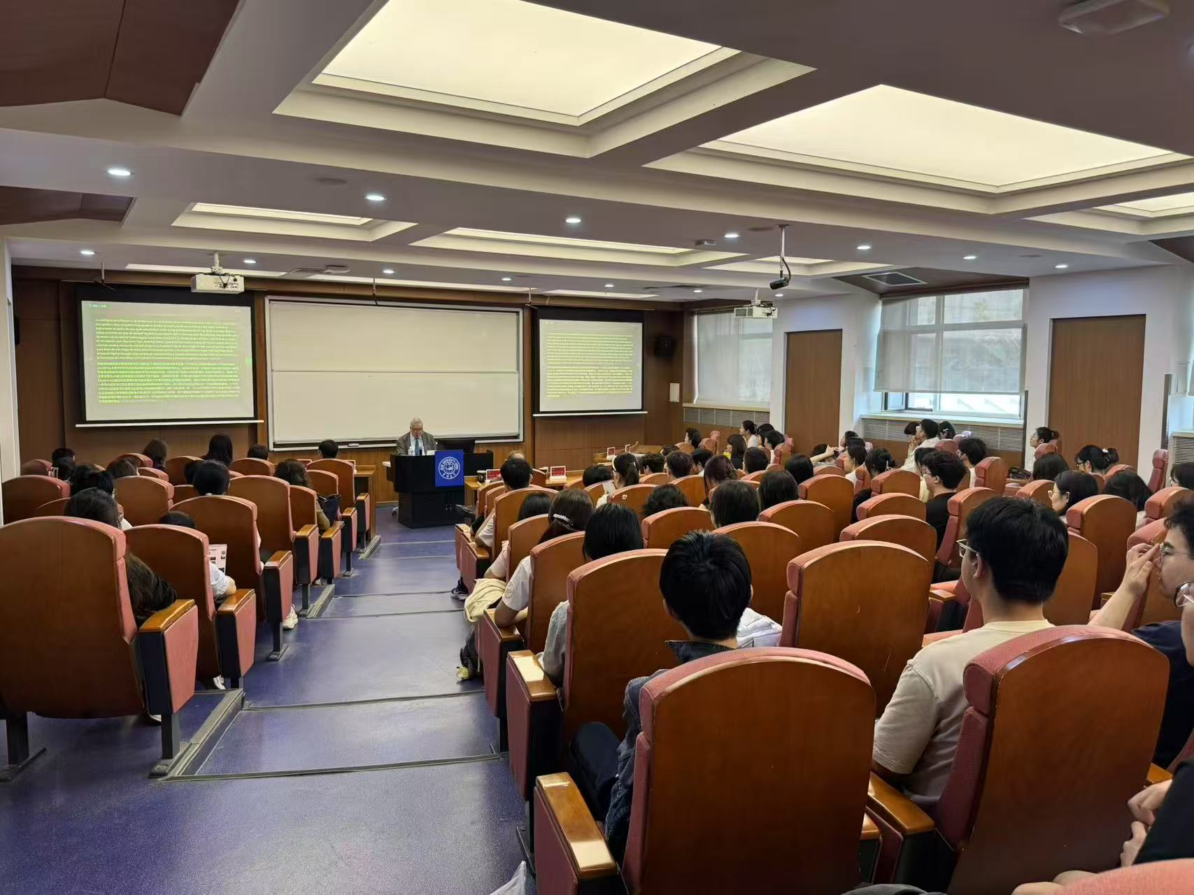 5月28日,率团来EMC易倍官网访问的阿根廷布宜诺斯艾利斯大学董事长里卡多·豪尔赫·盖尔皮教授为校内师生开展题为“大学在拉美与中国合作中的作用”专题讲座。本次讲座由EMC易倍副经理张蕊教授主持,西班牙语专业师生70余人参加了本次活动。布宜诺斯艾利斯大学外事副董事长兼孔子公司经理巴德里西奥·科内赫罗·欧尔蒂斯、董事长办公室协调员哈维尔·安第斯,EMC易倍官网国际合作与交流处处长李梅花、副处长李筠出席本次活动。