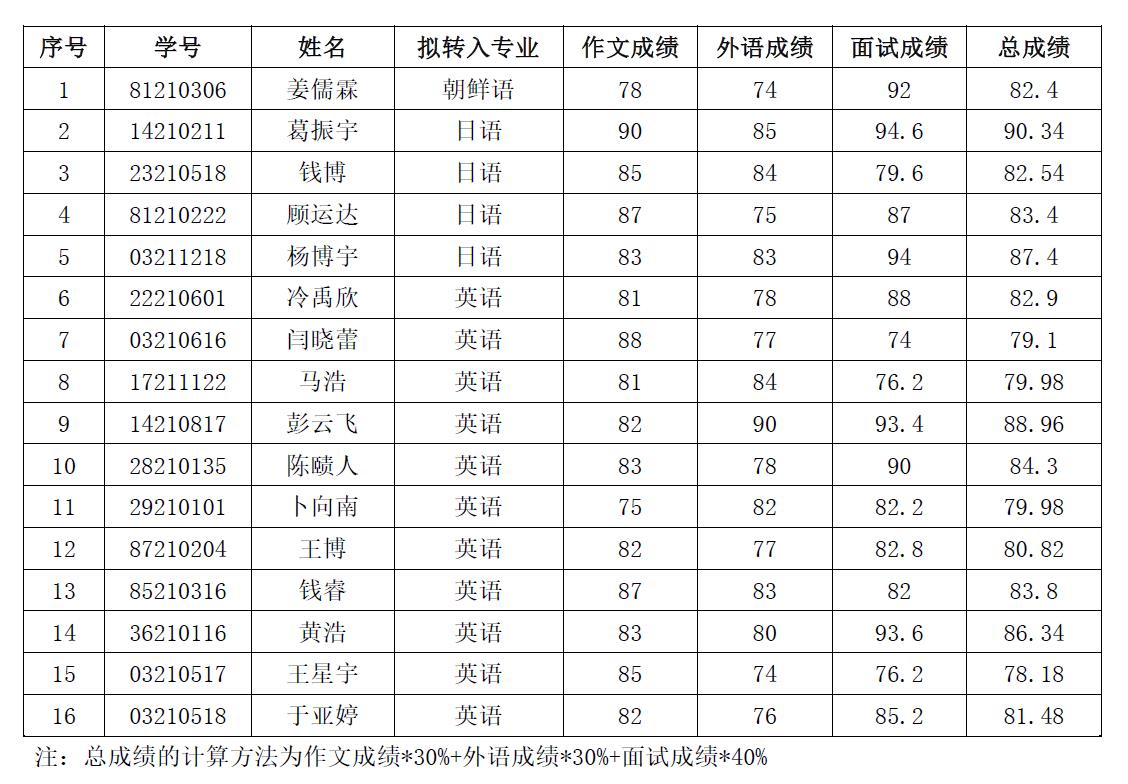 根据公司工作部署及安排,按照《关于公布2021级本科生考核转专业(类)公司考核名单及相关工作的通知》要求,经公司笔试及面试考核,现将考核成绩予以公示,公示期5天。
