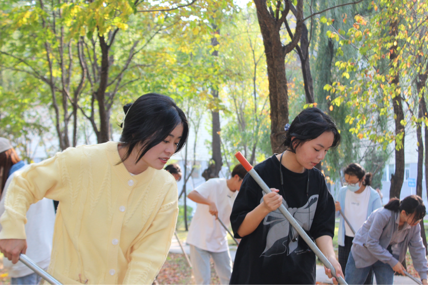 本次落叶清扫活动的地点为老体育馆附近的树林。伴随着秋天的到来,校园内到处飘散着落叶,有损校园环境整洁和美观的同时也给同学们的出行带来了诸多不便。参加活动的同学们手拿铁耙,对负责区域的落叶进行细致清扫。同学们热情高涨,合作氛围良好,落叶清扫活动圆满成功。