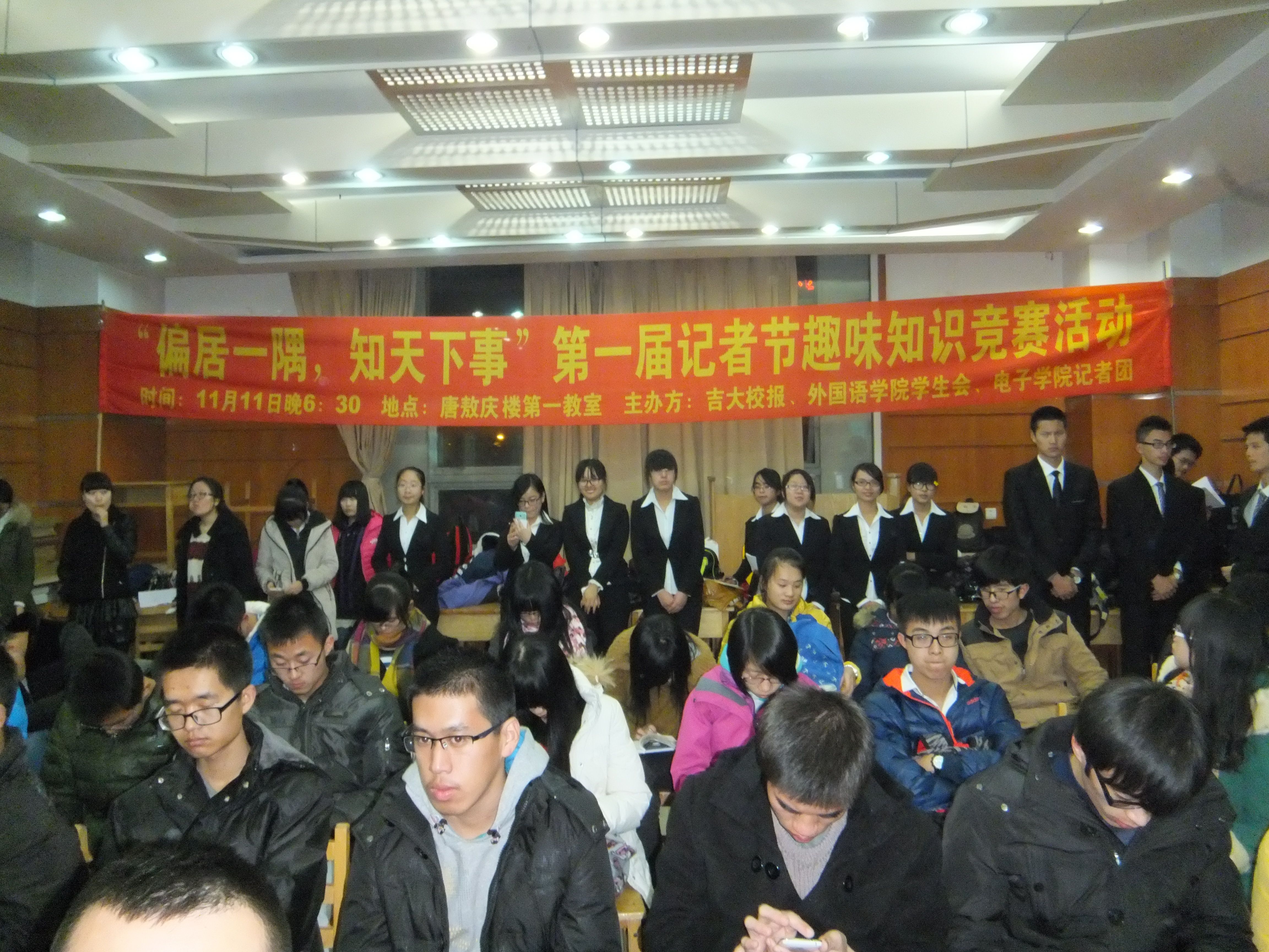 为增进院际间交流合作,拓展和丰富员工知识面,增强同学们对新闻报道相关知识学习和了解,11月11日,外国语公司、电子科学与工程公司、《EMC易倍官网报》老员工通讯社在唐敖庆楼联合举办了以“偏居一隅,知天下事”为主题的首届记者节趣味知识竞赛活动,共有自两个公司的25名员工参赛。
