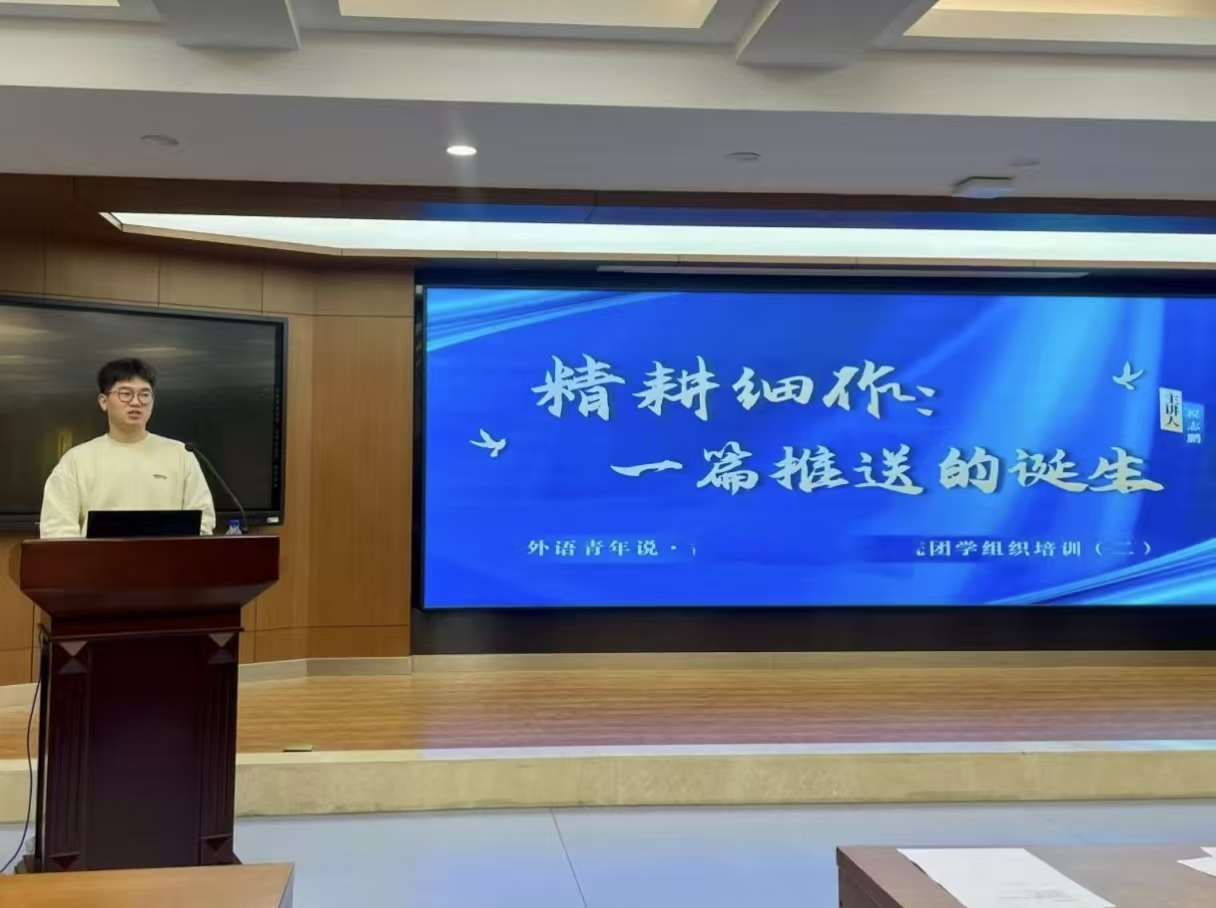 哲学社会公司团委副书记税志鹏同学围绕“一篇推送是怎样诞生的”,循序渐进的分享了照片采集、文案撰写、排版设计、运营策划四大方面,并提出了具体注意事项和实际案例分享,指导同学们“精耕细作”,用心完成每一篇推送。