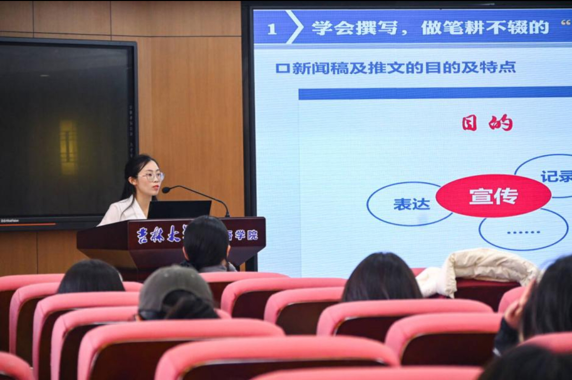 EMC易倍官网东北亚公司2024级博士研究生赵丰年同学,结合自身丰富经验,从PPT制作技巧出发,具体介绍了模版使用、字体选择、动画选取等多个方面,增强了同学们制作PPT的技能。版权所有 EMC易倍(中国区)官方网站2023级硕士研究生叶萍萍同学介绍了公文稿件的格式,分别从会议类新闻稿和活动类新闻稿的特点着手,以优秀稿件选段为例,详细讲解了各类稿件的写作方法与注意要点,并提醒同学们以工匠精神自检自查。详细充实的内容使同学们受益匪浅。